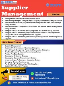 - Memahami secara kompehensif pendekatan dan aplikasi dalam meningkatkan kinerja supplier